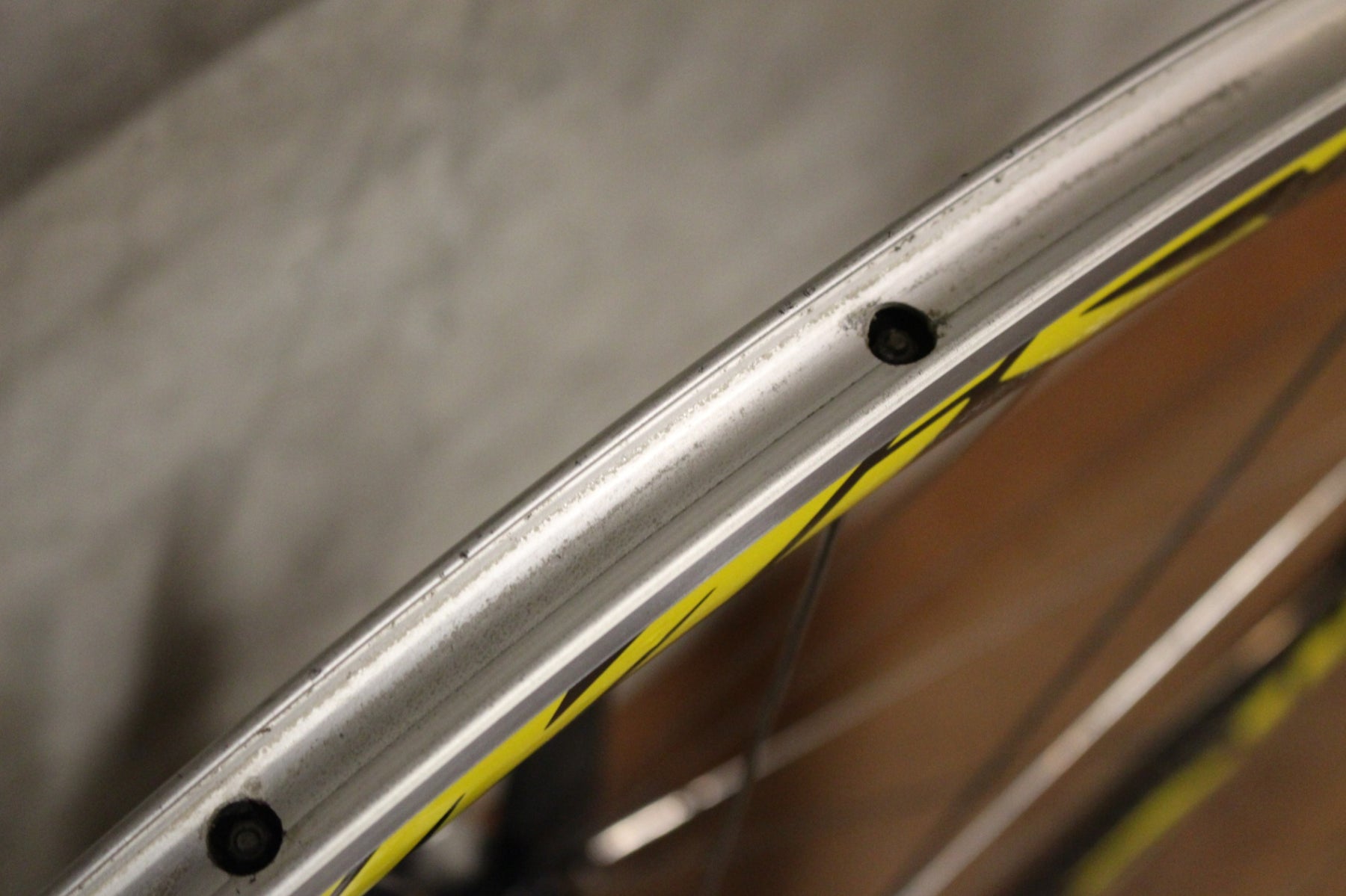 シルバーのエアロスポークで手組みされたリアホイール。