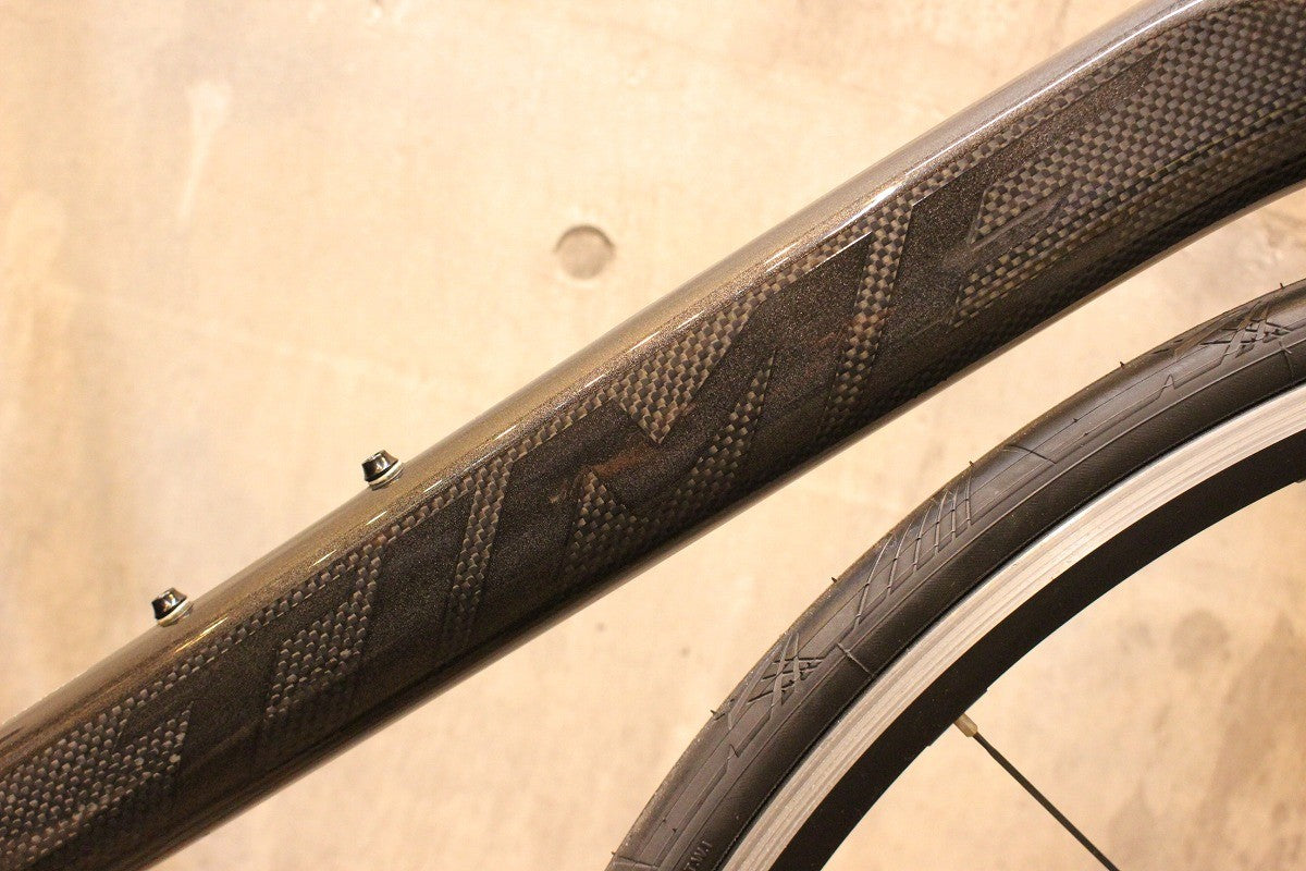 なにより、その精度の高さを主張するように、フレーム全体にはカーボンの模様もあらわに