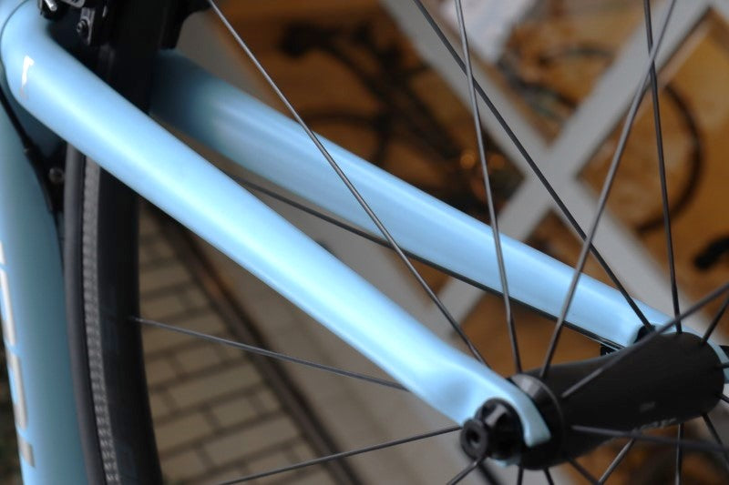 扁平したチェーンステーや、緩くベンドしたフロントフォークなどによって振動をいなしながらも、