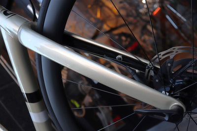 チェーンステー下のワイヤ―受けもボルト留めで付け替えが可能になっており、
