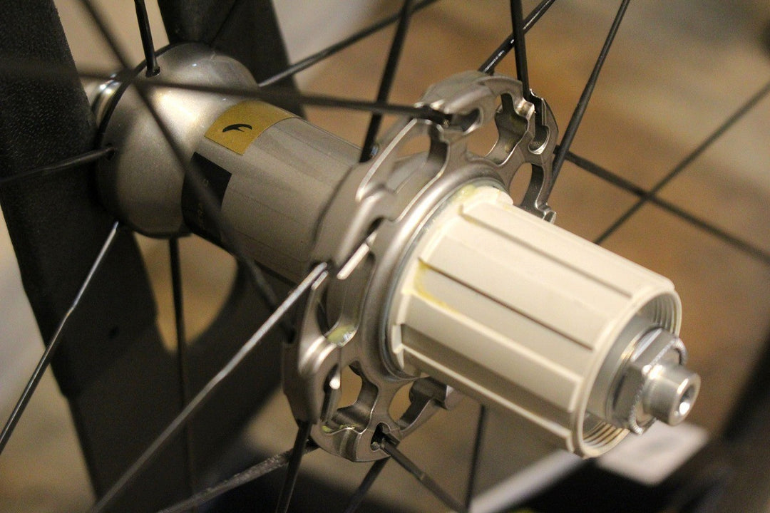 滑らかな走行を実現するセラミック製USBを採用し、フロントハブにはカーボンを採用。